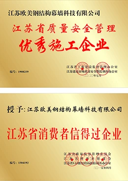 江苏欧美钢结构幕墙科技有限公司郑州分公司是集团按全国发展规划部署要求,特在郑州设立的分公司。本公司前身为八一网架集团有限公司,隶属于解放军 总后勤部,成立于1956年,2006年企业改制成立江苏欧美钢结构科技有限公司,是住建部核定的钢结构工程承包壹级、建筑幕墙工程承包壹级、建筑装饰装修工程承包贰级、金属门窗工程承包叁级、地基与基础工程承包叁级。同时兼有钢结构,幕墙,装饰工程三项甲 级设计资质。是一家集钢结构、建筑幕墙、金属门窗、地基与基础及建筑装修装饰为一体的大型综合性建筑企业。