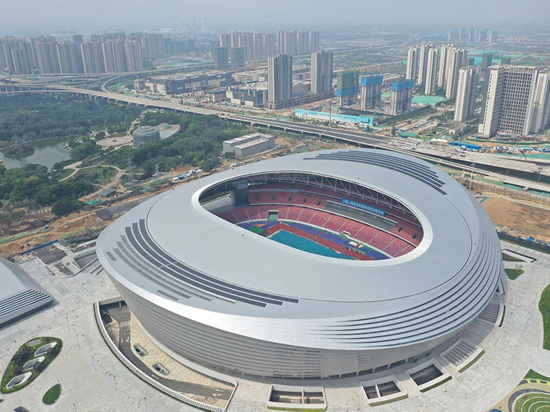 工程介绍:郑州奥林匹克体育中心项目位于河南省郑州市,总建筑面积为57万平方米。采用全球**跨径,**悬挑的大开口车幅式索承网格结构,设计**跨径311米,**悬挑54.1米。其中,环向密封拉索直径为130毫米,单个索夹重达6.5吨。